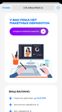 Занимайтесь творчеством. RETOUCH BOT заберёт рутину на себя. Попробуйте бесплатно и оцените результат
